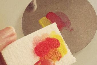 Alors en voyant toutes les vidéos tutoriels pour cette technique, je me suis dit "oh mais c'est facile, tu mets du vernis sur une surface plate, tu prends une éponge, tu prends les deux vernis avec qui du coup se mélangent pour faire le dégradé et hop tu tapotes sur ton ongles! Bin oui c'est simple quoi ! Même un enfant de 10 ans peut le faire !"