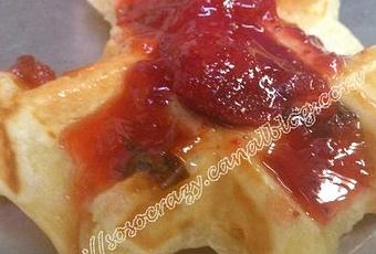 Des gaufres faites un peu comme je le sentais, j'ai ajouté du lait jusqu'a l'obtention d'une consistance qui me convenait et voilà, resultat très satisfaisant :)
