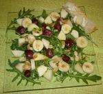 Pour la vinaigrette: Vinaigre de framboise, huile d'olive, sel, poivre, une dizaine de pistaches émondées.