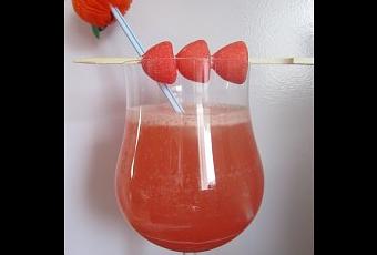 Une fois que les fraises sont totalement fondues, laissez refroidir. Pressez le pamplemousse. Piquez 3 fraises tagada sur chaque pic de brochette.