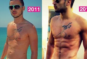 Dix mois séparent ces deux photos mais aussi beaucoup de sport et de discipline alimentaire. Tomi a suivi un régime hyper-protéiné et il a pratiqué musculation, fitness, cardio-training et canoë-kayak. Il passe ainsi de 64 à 63 kg. Le but n'était pas de perdre du poids mais de remodeler sa silhouette. Mission accomplie !