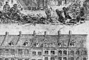 Le dessin représente le Marché aux poissons et un rang de maisons démolies.
