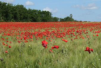 RougeTrès fragiles coquelicotscomme lourds pavotspar l'averse s'ront dévêtus