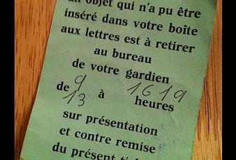 "Un objet qui n'a pu être inséré dans votre boîte aux lettres est à retirer au bureau de votre gardien de 9/13 à 16/19 heures sur présentation et contre remise du présent ticket."Réponse à la curiosité qui me taraudait hier : c'est une jolie écharpe multicolore en laine bio* tricotée par ma maman. Utile pour l'hiver. Ou pour l'été qui traîne les pieds dans la mélasse du dérèglement climatique. Y a plus de saison, ma bonne dame, me disait ma gardienne, le nez sur les prochaines marguerites sur mon rebord de fenêtre, sur l'unique fraise rougeoyant sous l'effet de trois ou quatre rayons de soleil parisien.