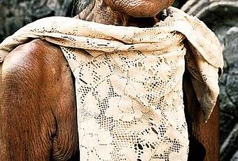 Beautiful woman selling flowers in Pura Beji temple in Sangsit - Bali, Indonesia.