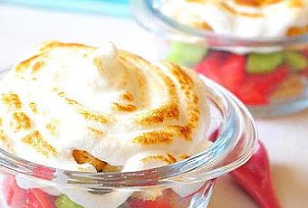 Remplissez de meringue une poche à douille et décorez le dessus des fruits. Mettez à cuire pendant 5 à 8 minutes à four préchauffé ('180°) en surveillant la coloration de la meringue.