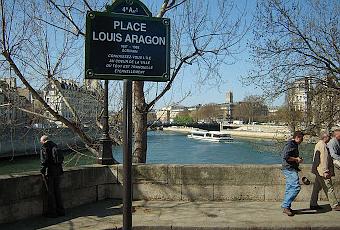 L'ile Saint-Louis, Aragon (1897-1982)l'a chantée, et celle-ci vient de lui offrir une place à son extrémité ouest, sur le quai de Bourbon, près de la maison d'Aurélien dans son roman du même nom. Le poète aurait eu une liaison dans un appartement de cette place avec la milliardaire Nancy Cunard. (1896-1965, écrivain anglaise, éditrice, militante politique, anarchiste et poète)