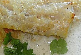 Passez les dos de cabillaud dans un plat sous la grille chaude du four pendant 3 minutes en vérifiant la couleur et la cuisson arroser 2 ou 3 fois avec le jus de cuisson (jus orange).