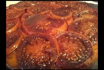 Hier, Juliette m’a donnée envie avec sa recette de tartelette à la tomate cerise et au caramel balsamique du blog Les recettes de Juliette. Du coup, je me lance dans le modèle géant en l’adaptant avec ce que j’ai ^^