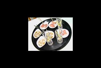 Rouleau de pousses d'épinard, farce de pétoncle et saumon et noix de Saint Jacques avec un sabayon de fumet.