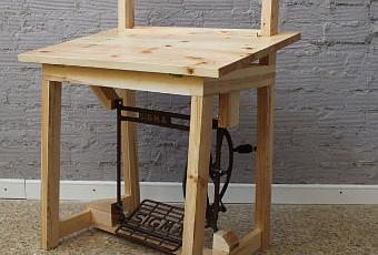 En recyclant un mécanisme ancien de machine à coudre SIGMA, il vous permet par le mouvement de la pédale plus une dynamo de bicyclette de créer votre propre énergie qui sera directement utilisée par une ligne de LED.