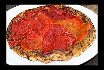 - Recouvrir les poivrons avec la pâte (coté tapenade vers le bas).