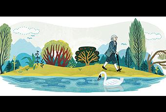 Jean-Jacques Rousseau aurait eu 300 ans aujourd'hui. Un nouveau doodle vient nous rappeler la date de sa naissance, le 28 juin 1712 à Genève. Philosophe et musicien genevois francophone, son décès a eu lieu le 2 juillet 1778 à Ermenonville, où le marquis de Girardin lui avait offert l'hospitalité, dans un pavillon de son domaine, près de Paris. Il y était enfin heureux et c'est là qu'il continua d'écrire son magnifique livre posthume: "Les rêveries du promeneur solitaire". On le voit ici représenté pendant une de ses longues marches quotidiennes qu'il affectionnait. Il y meurt subitement le 2 juillet 1778, sans doute d' un accident vasculaire cérébral.