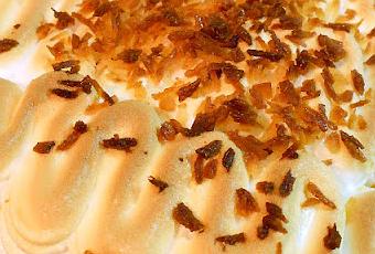 Pour la décoration, un peu de noix de coco caramélisée couronne la meringue passée au four.