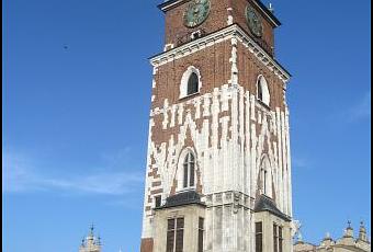 Cracovie est une petite ville très agréable, avec un centre-ville circulaire ancien, et une grande place au milieu . Sur cette grande place, il y a l’ancien hôtel de ville :