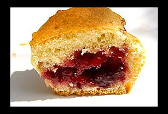 Aujourd'hui je vous propose encore une recette de muffins bien moelleux avec une surprise quand on croque dedans: un coeur fondant à la confiture de cerises.