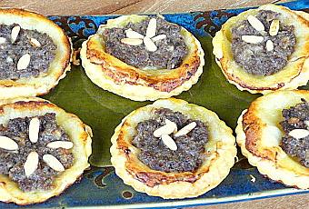 Voilà encore une bonne recette trouvée sur le blog deMonique. Rien que le nom libanais m'amusait. En petits modèles, c'est parfait pour l'apéritif ou plus grand en entrée pour un mezzé. J'avoue que pour moi ce fut ma belle découverte !! Je ne connaissais pas et la mélasse de grenade donne toute la subtilité de cet amuse bouche