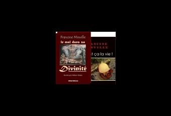 Francine Minville est l’auteure de deux recueils de poésie : “Ç’est ça la vie!“ et “Le mal dans sa divinité“ (Éditions Dédicaces). Elle s’apprête à publier un premier livre pour enfants, illustré par le dessinateur belge Jean-François Debaty. Ce nouveau livre s’intitulera “Platon le Suricate”.