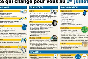 Le décret n° 2012-828 du 28 juin 2012 revalorise le salaire minimum interprofessionnel de croissance (Smic) de 2%, soit 1.4% pour prendre en compte de façon anticipée l’inflation des derniers mois et 0,6% au titre d'un "coup de pouce" (le premier depuis 2006).Le Smic est porté à 9,40 euros bruts l'heure soit 1.425,67 euros bruts mensuels sur la base de la durée légale de 35 heures. Le gain net mensuel est de 21,50 euros pour un temps plein. Le texte entre en vigueur le 1er juillet 2012. Ce qui change également au 1er juillet 2012 dans les autres domaines (transports, consommation etc.) :