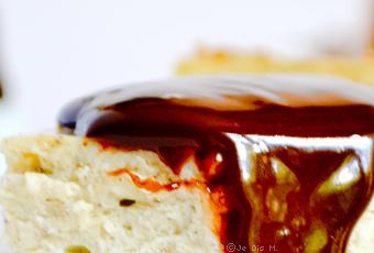 Sortir le moule à cheesecake du four, verser la préparation et lisser. Enfourner pour 1h, le cheesecake est encore tremblotant à la sortie du four. Laisser refroidir et réserver au frigo pendant 48h. Servir avec une sauce au chocolat: Faire fondre le chocolat noir et ajouter la crème liquide chaude. Bien mélanger.Servir.