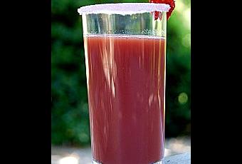 Tremper le bord du verre dans du sirop de fraises (ou autre) puis le tremper dans une assiette remplie de sucre en poudre.