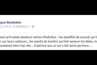 Après avoir rendu hommage à Olivier Ferrand, député PS et président de Terra Nova décédé ce week-end, l’ancienne députée Monique Boulestin, exclue du parti socialiste pour candidature dissidente, a annoncé au travers des réseaux sociaux qu’elle venait de rejoindre le Parti radical de gauche dont elle avait obtenu le soutien, afin de poursuivre son engagement et sa réflexion politique au sein de la majorité présidentielle. Ses anciens camarades risquent donc fort de recroiser sa route…
