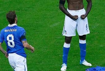 Comme vous le savez, l’Italie, qui pour arriver en finale de l’Euro, a affronter l’Allemagne, match remporté 2-0 par les Italiens, grâce à un doublé de Mario Balotelli, alias Super Mario ! C’est la façon de célébrer son deuxième but, à Balotelli qui a pu amuser de nombreux internautes, qui ont en profité pour détourner cette image.