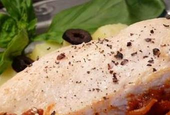 Au moment de dresser vos plats, déposez le blanc de poulet au milieu de l’assiette, tranchez en obliques les petites pommes de terre et nappez la volaille de sauce tomate parfumée. Ajoutez quelques feuilles de basilic et servez aussitôt.