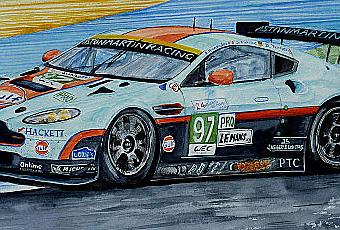Ma voiture préférée de ces 24 Heures du Mans : L'Aston Martin Vantage V8. Même si les couleurs Gulf ont un air de vu et revu, c'est la plus belle à mon goût...