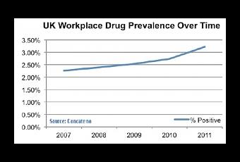 Source:ConcatenoJuly 2012High Society: Drug prevalence in the UK workplace. A research report by Concateno, First Edition (PDF, 551kb) et NHS “Drugs in the workplace 'widespread”