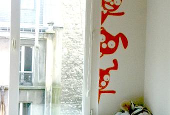 Merci Caroline pour ces belles photos, nous découvrons nos stickers lapins farceurs par Krol, posés sur un des côtes de la fenêtre pour un super effet !