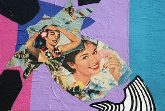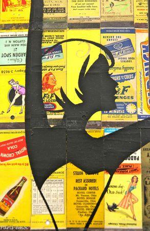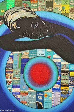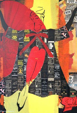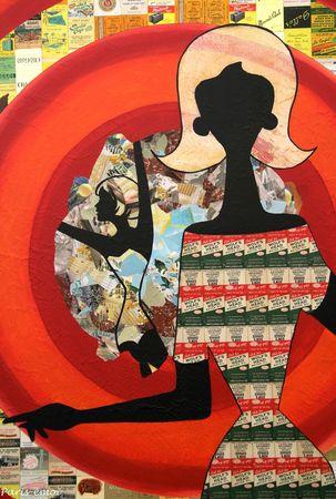 Non content d'être une personnalité particulièrement attachante, cet artiste peintre et colleur mélange avec bonheur silhouettes sur fond colorés et remplissage en vieux papiers qu'il chine amoureusement depuis plus de 20 ans...