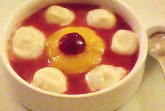 Vous disposez dans des coupes à desserts le jus : vous déposez l’oreillon de pêche (ou 2 empilés sur la photo) et vous entourez de crème blanche en îlots(ou bien tout le tour de la pêche (selon votre inspiration) sans oublier la cerise en finition. Ce dessert peut se faire d’avance, à servir bien frais.