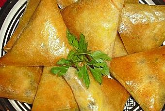 Des triangles dorés, une pâte croustillante garnie d'une farce délicieuse au poulet et champignons noirs...