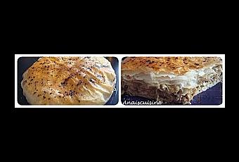 Etaler les amandes puis la préparation au poulet. Rabattre les feuilles de brick.