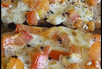 Répartir sur les tartines et faire cuire au four le temps que le fromage fonde.