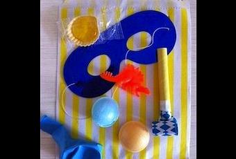 Pour l’anniversaire de Basile (en mars dernier, ce qui laisse entendre qu’on a un peu de retard…), Isabelle (Capucine et Cie) a concocté des pochettes surprise colorées et funs ! Ici, on adore.
