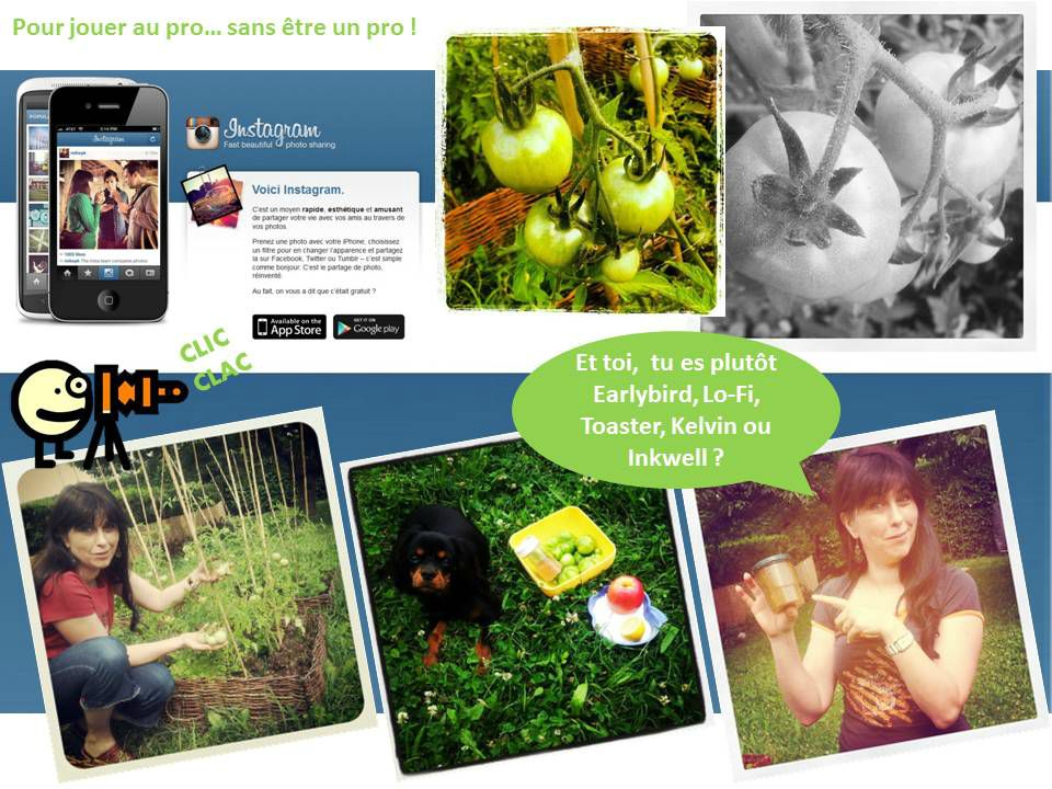 Sur l'illustration, à gauche la photo originale d'un de mes plants de tomates vertes, à droite des exemples de la même photo relookée de différentes manières (plus de contraste, effet de flou, lo-fi, toaster, inkwell, x-pro). Sympa non ?