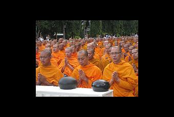 "Plusieurs milliers de moines (environ 12.600 moines, très exactement!!) et de fidèles se sont rassemblés sur le carrefour d’Asoke à Bangkok tôt ce matin, de 5h30 à 7h du matin au carrefour d’Asoke à Bangkok, pour une cérémonie d’offrandes (‘Tak bat’ en thaï) dans le cadre des célébrations des 2.600 ans de l’illumination du Bouddha.D'autres rassemblements identiques avaient déjà eu lieu à d’autres endroits de Bangkok et en province, organisés par le gouvernement, le Wat Phra Dhammakaya de Pathum Thani et des associations bouddhistes. Les fidèles viennent y faire des offrandes qui seront distribuées avant Asalaha Bucha (le 2 août cette année) à 286 temples, à des enseignants et à des militaires de quatre provinces du Sud (Narathiwat, Yala, Pattani et Songhkla). Asalaha Bucha commémore l’anniversaire du sermon initial du Bouddha à la veille de Khao Phansa, jour marquant le début du carême bouddhique qui dure trois mois. " Avec toutes ces ondes positives autour de nos dossiers .... ;-)
