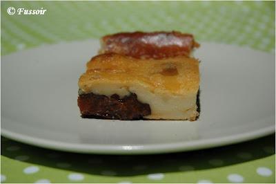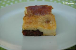 Ma petite touche perso, j'ai d'abord placé le far dans la position basse du four pour que le fond cuise bien puis je l'ai monté au bout d'une heure au milieu et j'ai laissé encore 30 mn (en position basse le haut n'a pas totalement doré en une heure) ça a donné une texture en bouche qui ressemble aux cannelés bordelais.