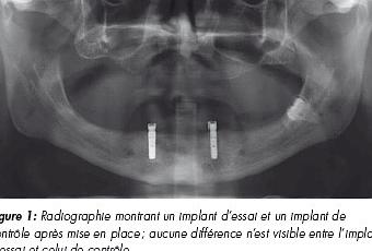 Un an après l’intervention chirurgicale, l’aveugle a été levé sur 89 patients et 178 implants ont été évalués. Trois échecs précoces d’implants ont été enregistrés (un implant d’essai, deux implants de contrôle) dans deux centres d’étude différents. Aucun échec d’implants n’a été enregistré à 2 ans de suivi.