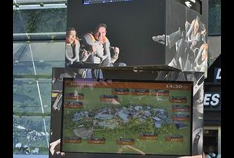 Devant l'attraction est apparue une borne indiquant les temps d'attente sur le Parc ainsi que le temps d'attente (en bleu) de l'attraction. Très réussie, elle donne plus de lisibilité à l'attraction.
