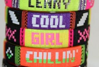 Des joncs en plastiques recouverts de fils de couleurs dans des coloris fluos et avec des messages trop sympas : c'est sûr cette fois j'ai trouvé de quoi habiller mes poignets !