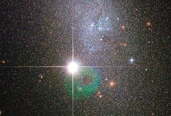 Une quinzaine de lointaines et plus grandes galaxies n’hésitent pas à se montrer à l’arrière-plan de cette photo capturée dans l’infrarouge et le visible.