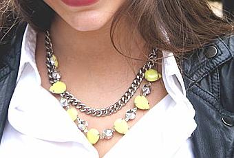 Tout d'abord cette jupe « néon » qui m'a tapé dans l'oeil chez H&M. Quasi homologue de sa compère chez The Kooples mais mieux coupée et presque dix fois moins chère (24e vs 190e). Prenons ensuite le collier. Peu adepte d'habitude des bijoux fantaisies, j'ai pourtant succombé à la folie du collier fluo (qui s'accorde à merveille avec la jupe n'ayons pas peur des mots).