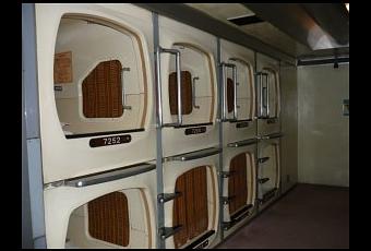 Pour une somme modique, souvent comprise entre ¥ 3000 et ¥ 4,000, l’invité lui-même loue une simple cabine-lit , de dimension d’environ 2 x 1 x 1 mètres et empilé en deux rangées à l’intérieur d’une salle contenant des dizaines voire des centaines de gélules. Les cabines de ces hôtels sont constituées d’un tube généralement en plastique ou en fibre de verre.