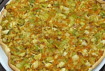 Faire cuire au four th 180° durant 20 minutes, le temps que la pâte cuise et que le dessus des légumes dore.