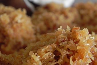 Pelez la pulpe pour conservez la chair blanche. Râpez finement. Vous obtiendrez ainsi 1 à 1,5 kg de pulpe de coco.