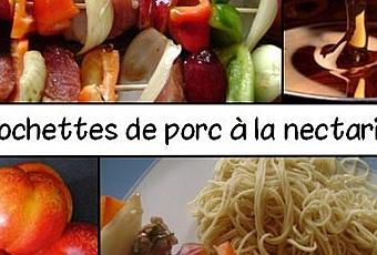 5) Sur des pics à brochette, alterner des morceaux de porc, d'oignons, de poivrons et de nectarines