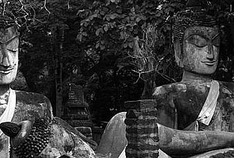 Le Parc Historique de Kamphaeng Phet ? Oui, pardon, je vais en parler ! Il renferme de nombreux temples de la période de Sukhothaï en moins bon état que dans l’ancienne capitale du Royaume mais dans un décor plus naturel. Ce qui fait que c’est un endroit très agréable pour des balades à vélos. Surtout la 2e partie. Et il y a quand même au moins deux temples qui valent le détour. Chacun dans son secteur (100 THB l’entrée à chaque fois ou 150 si vous achetez l’entrée pour les deux secteurs de suite). Le Wat Phra Kaew qui aurait hébergé à une époque le Bouddha d’émeraude qui se trouve maintenant dans le temple du même nom à Bangkok, comme tous les temples qui s’appellent comme ça en fait ); surtout remarquable pour ses deux bouddhas assis installés derrière un troisième couché. Et le Wat Phra Si Iriyabot et son bouddha debout assez bien conservé mais timide car visible que de l’arrière. Et à côté beaucoup d’autres ruines dont le Wat Chang Rop soutenu par des statues d’éléphants.